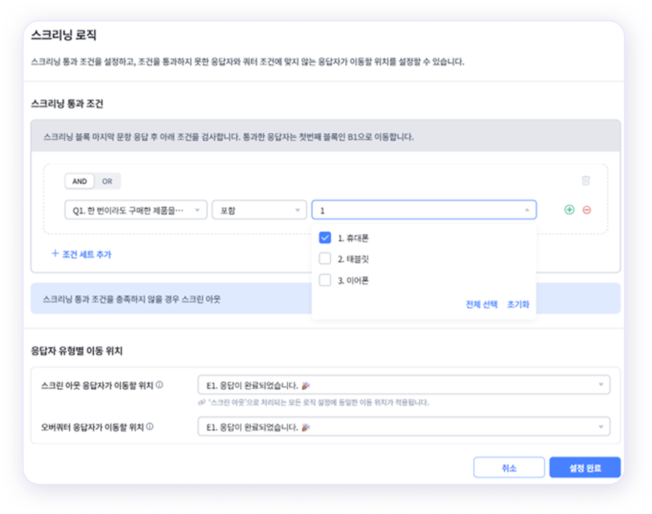 스크리닝 문항을 통해서 원하는 대상자만 쏙쏙