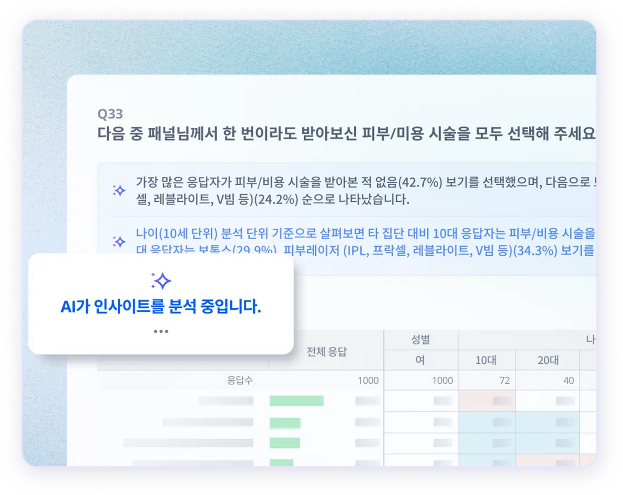 서베이 결과는 전문가가 일하는 방식 그대로, AI가 데이터를 분석하고 시각화하여 제공합니다.