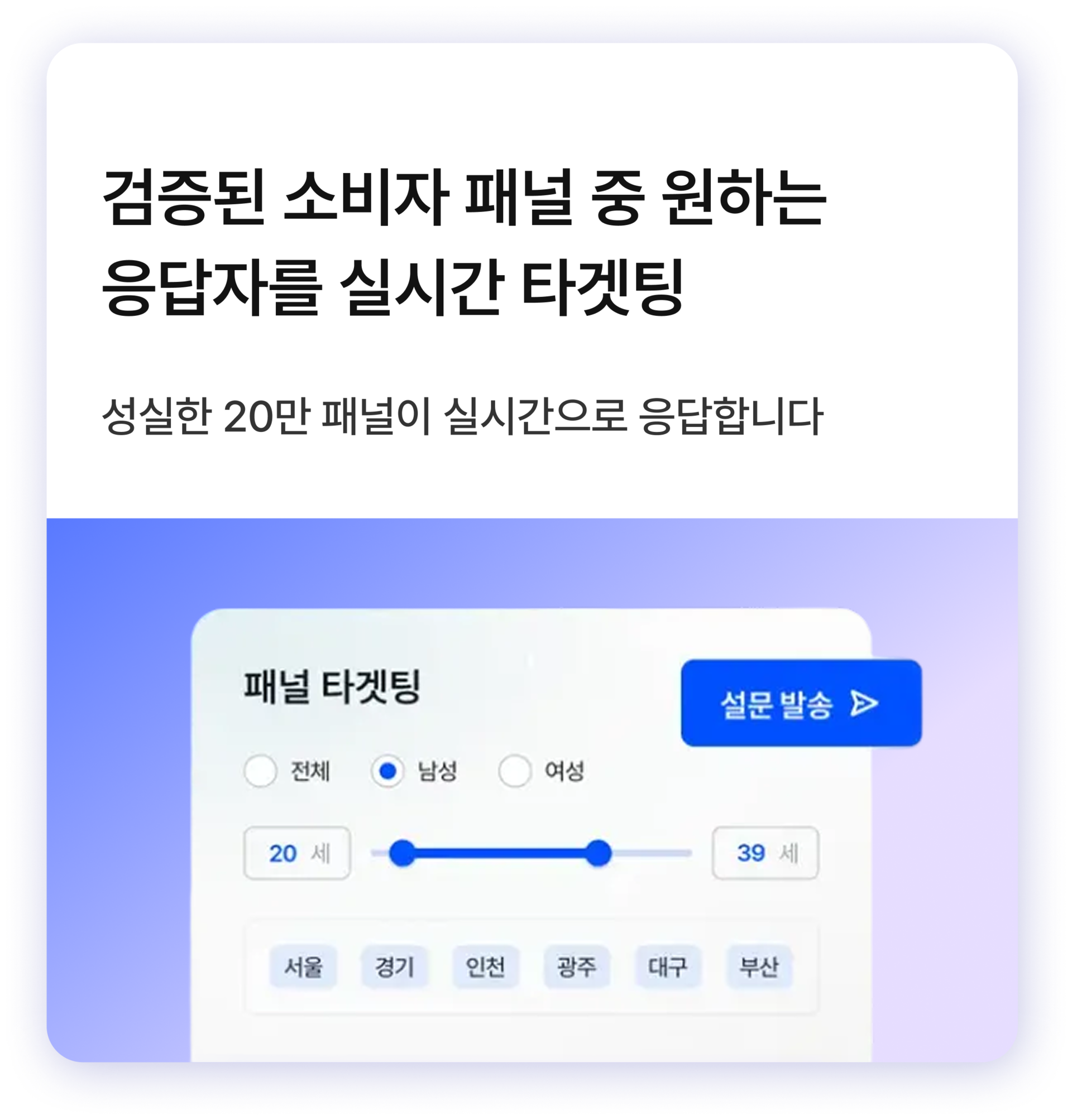 서비스 타겟 대상 서베이는 20만명의 패널을